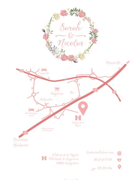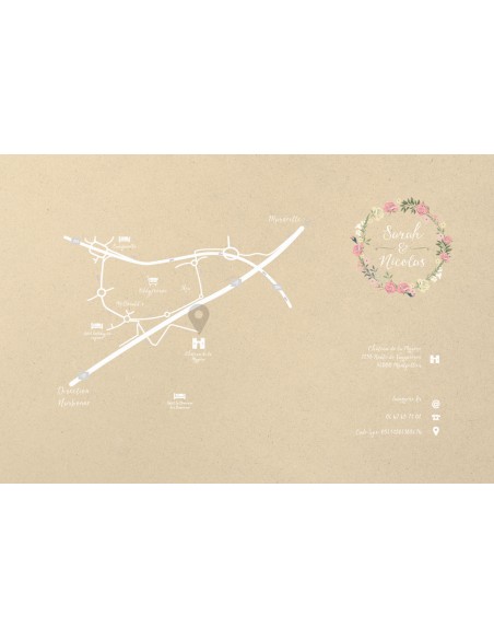 Carton supplémentaire Plan et direction à rajouter à votre faire-part de mariage assorti au visuel de la collection Sarah.