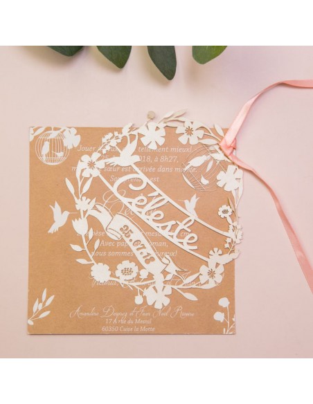 Pack :Faire-Part Naissance Broderie Papier Oiseaux