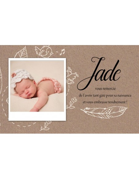 Remerciements Naissance Thème Plume - Jade