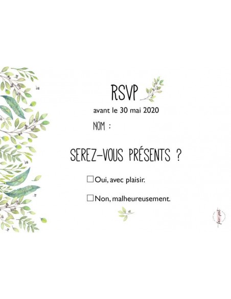 Carton supplémentaire réponse à rajouter à votre faire-part de mariage assorti au visuel de la collection Louisa.