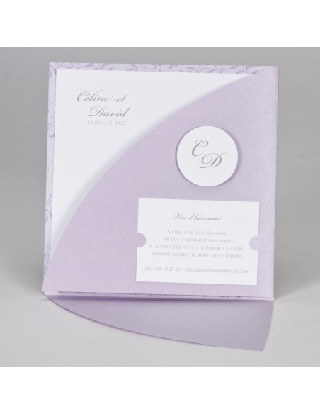 • Pack Faire-part mariage pochette mauve motif feuillage