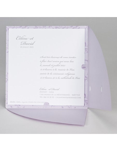 Pack :Faire-part mariage pochette mauve motif feuillage