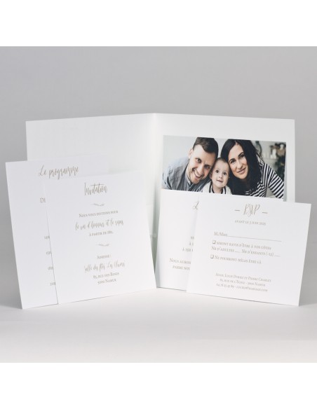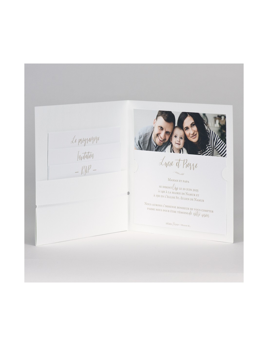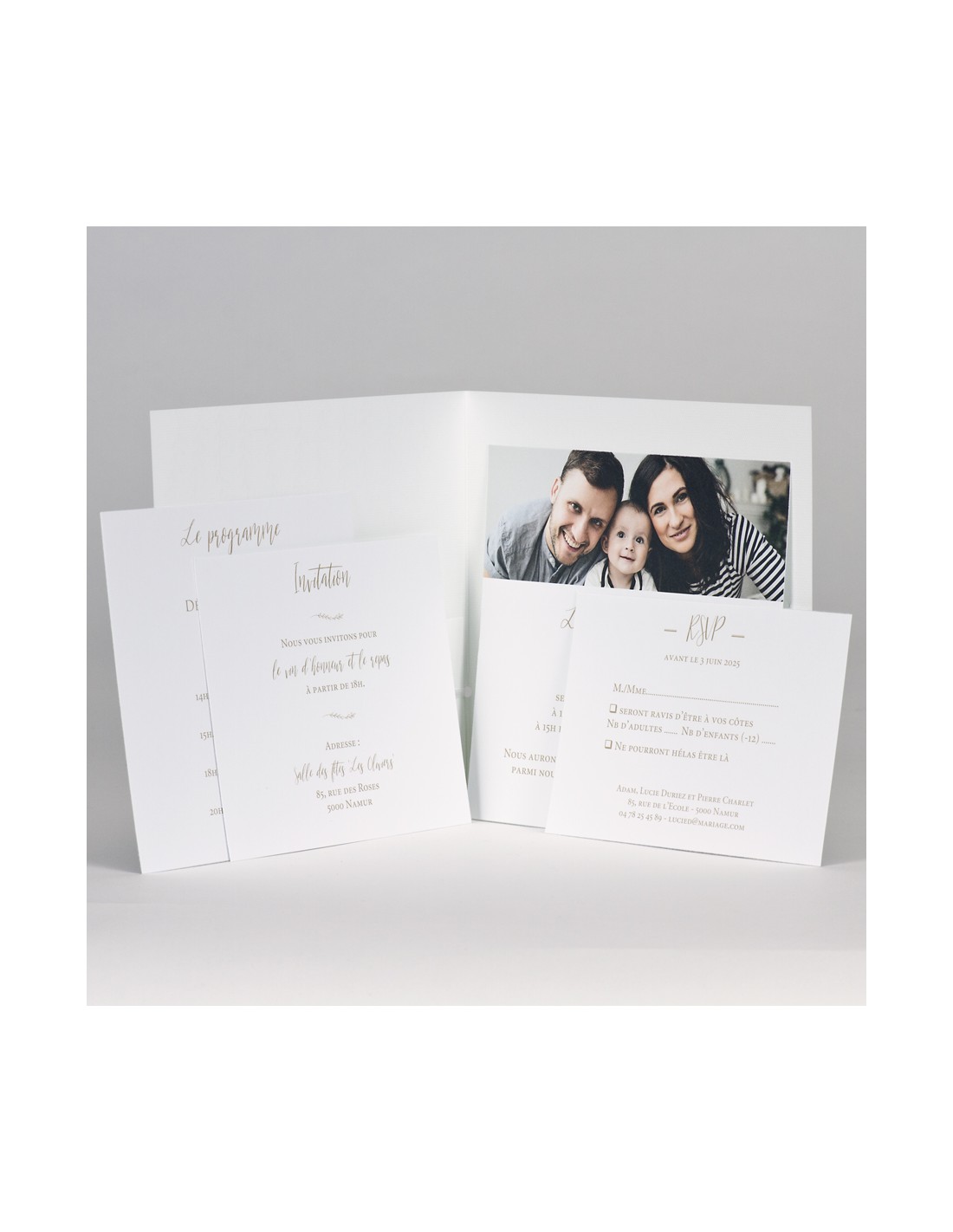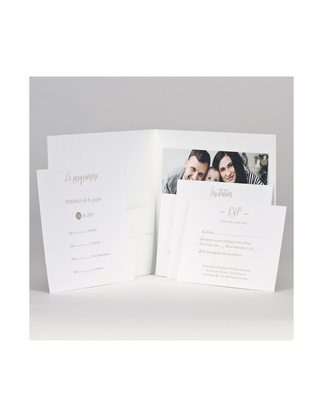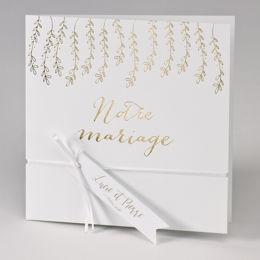 Pack Faire-part Mariage pochette blanche feuillage en dorure or