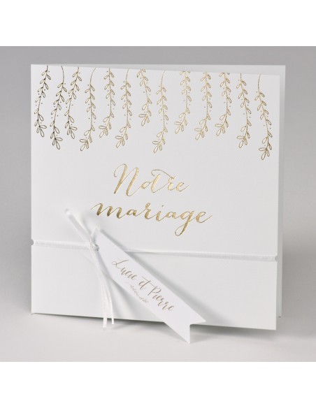 Pack :Faire-part Mariage pochette blanche feuillage en dorure or