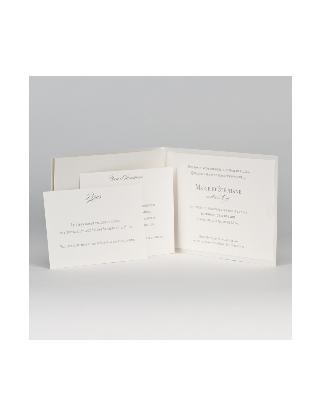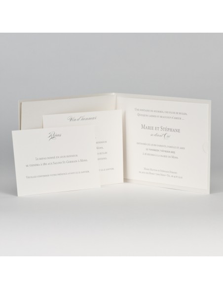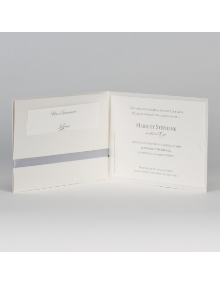 Pack Faire-part mariage pochette blanc nacré avec ruban