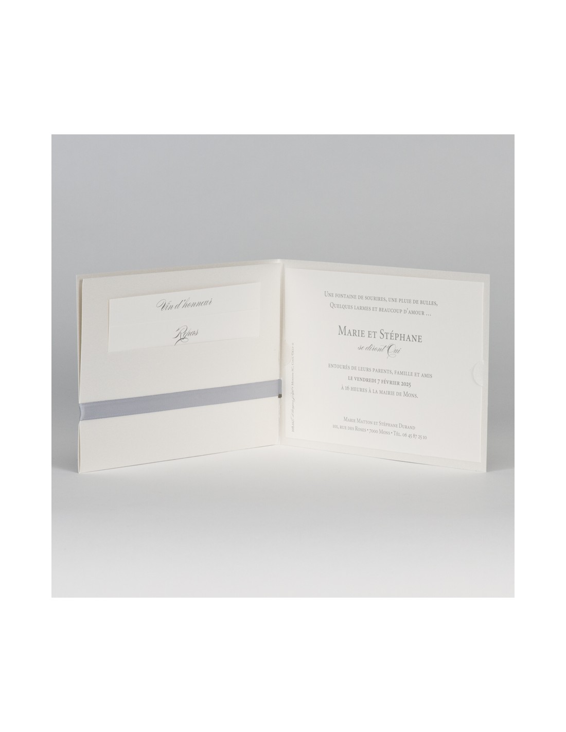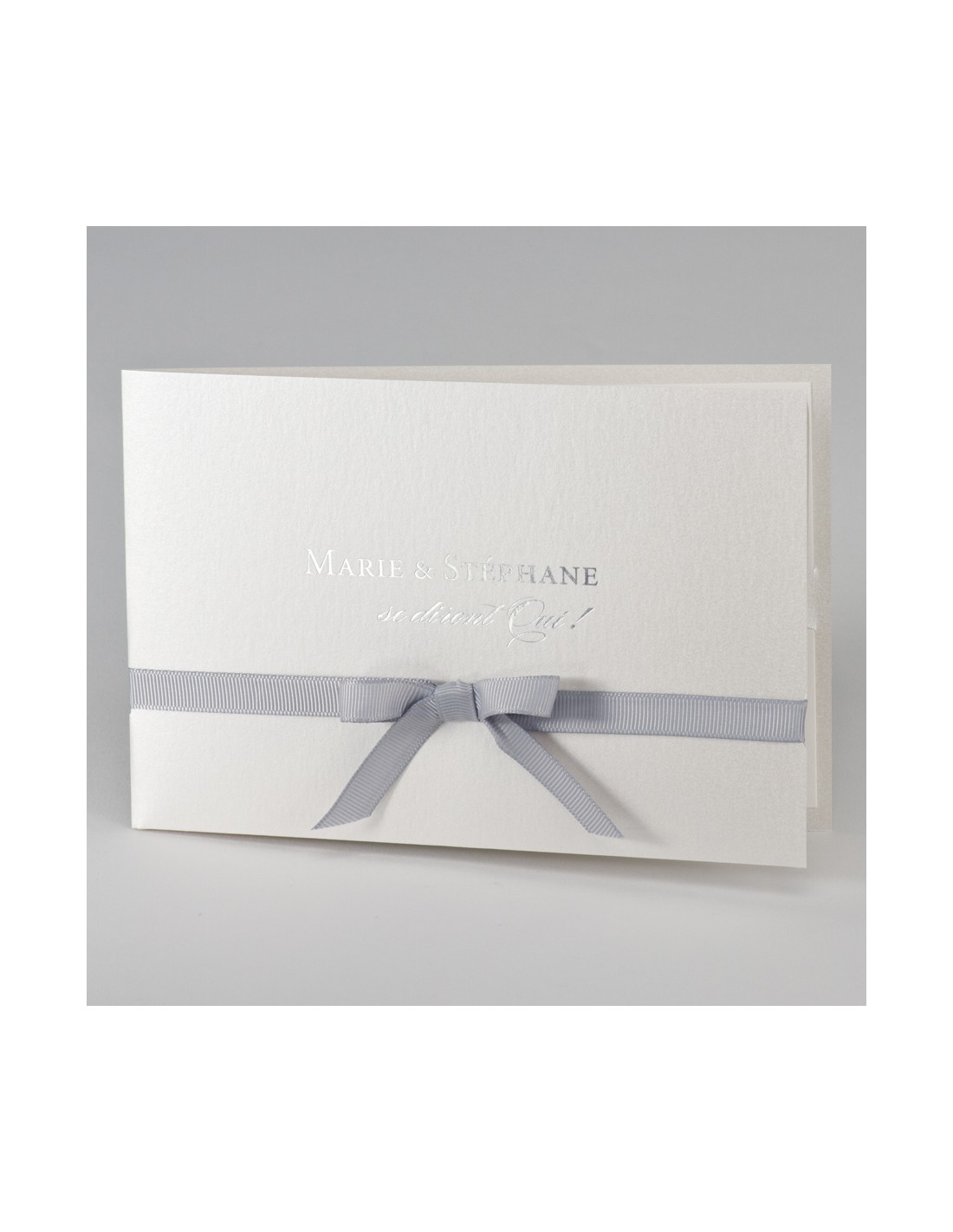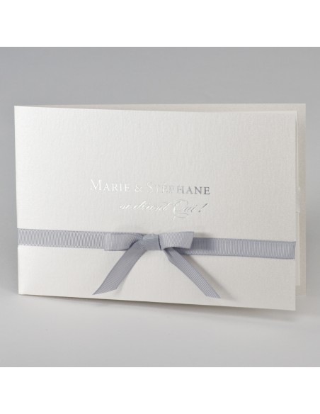 Pack :Faire-part mariage pochette blanc nacré avec ruban