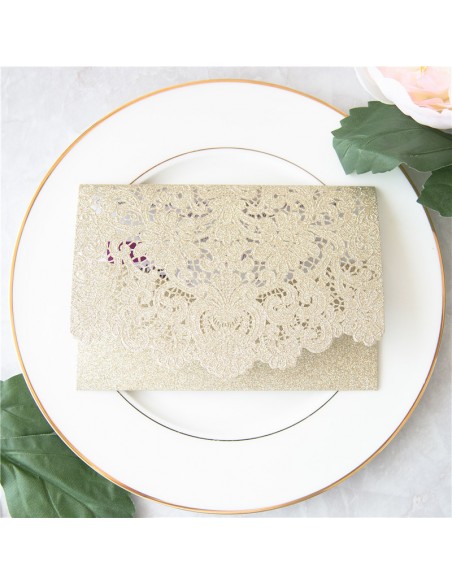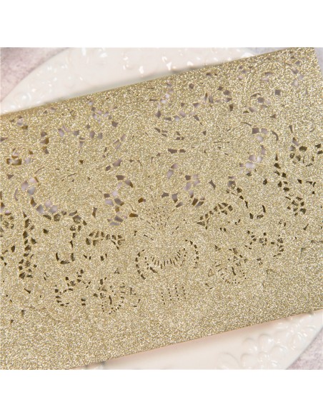 QUANTITÉ MINIMUM 30 EXEMPLAIRES : 30 x - Faire-Part Mariage Pochette Romantique Glitter - Quantité - Choisissez votre quantité