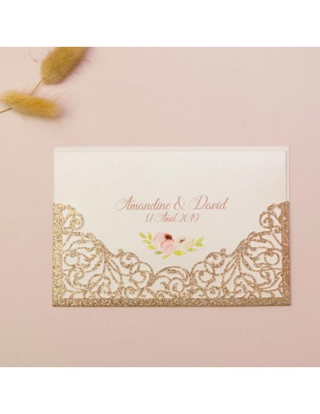 Pack Faire-Part Mariage Pochette Glitter Arabesque - POC0007G