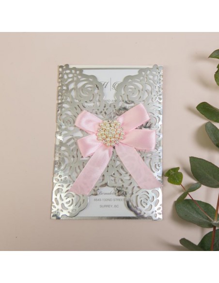 Pack Faire-Part Mariage Pochette Roses Glitter
