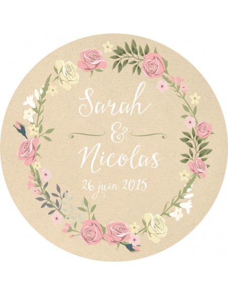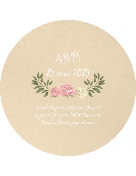 Pack :Faire-part mariage Rond Couronne de Fleurs - Collection Sarah