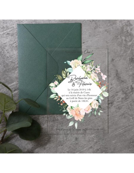 Pack :Faire-Part Mariage Plexi Floral - Collection Alexis - Modèle 39