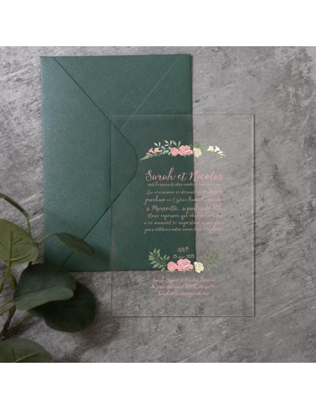 Pack Faire-Part Mariage Plexiglas couronne de fleurs - Collection Sarah
