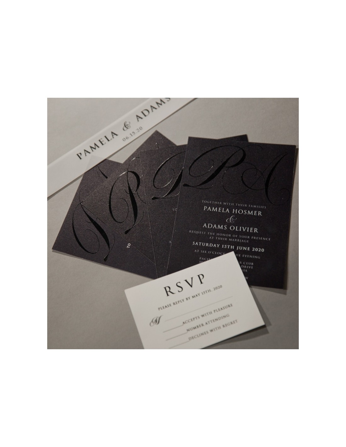 Pack Faire-part Mariage Chic en Noir vernis UV