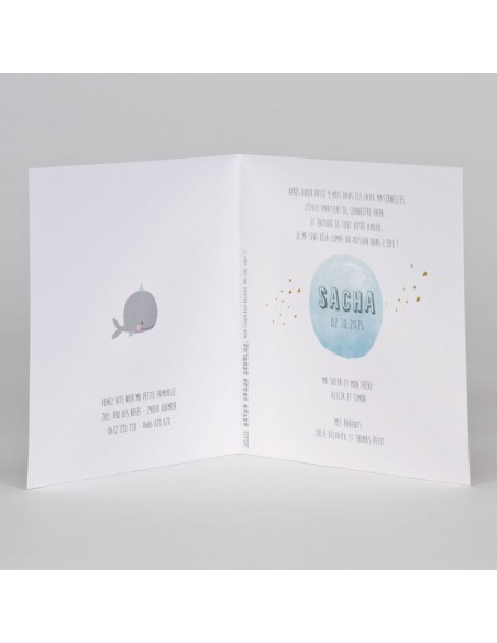 Bundle :Faire-Part Naissance baleine et gouttes en dorures