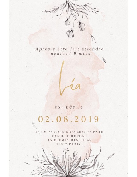 Pack Faire-part Naissance aquarelle - Collection Liana