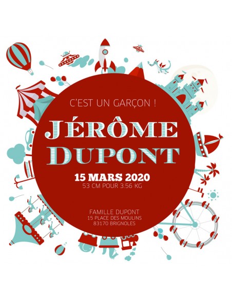 Pack Faire-part Naissance Cirque - Collection Jérôme