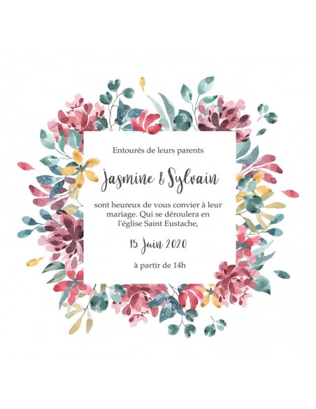Ce modèle au thème fleurs colorées aquarelle est à personnaliser avec vos textes et couleurs.