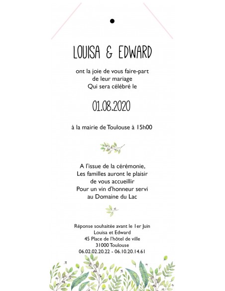 Ce modèle au thème végétal avec motif feuillage est à personnaliser avec vos textes et couleurs.