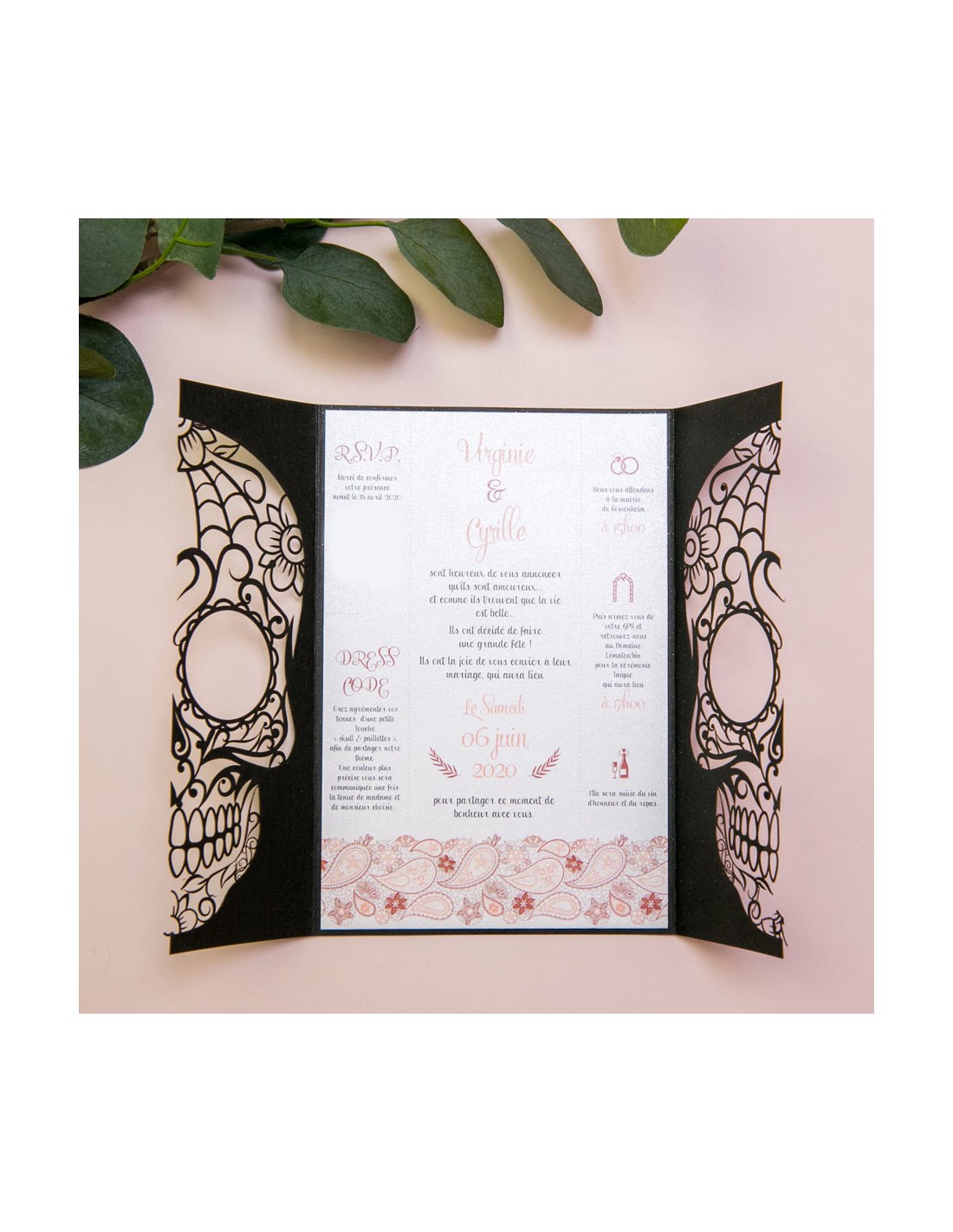 Pack :Faire-part Mariage Día de Muertos - Tête de mort - POC0025