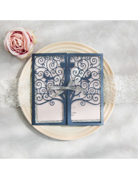 Pack :Faire-part de mariage pochette dentelle Arbre féerie - POC0169