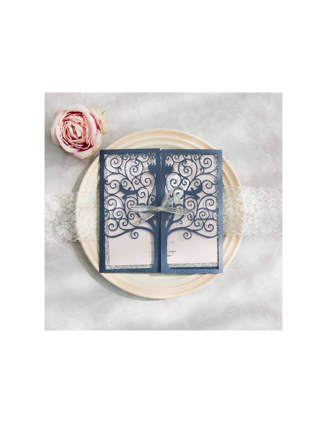 QUANTITÉ MINIMUM 30 EXEMPLAIRES : 30 x - Faire-part de mariage pochette dentelle Arbre féerie - POC0169 - Quantité - Choisissez votre quantité