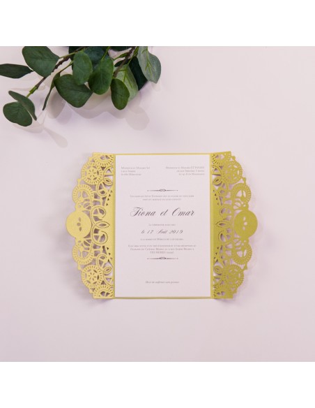 Faire-part mariage dentelle papier bohème - Thème Romanesque avec carton d'invitation en création sur-mesure