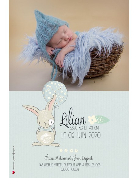 Faire-Part Naissance Magnet Lapin - Collection Lilian