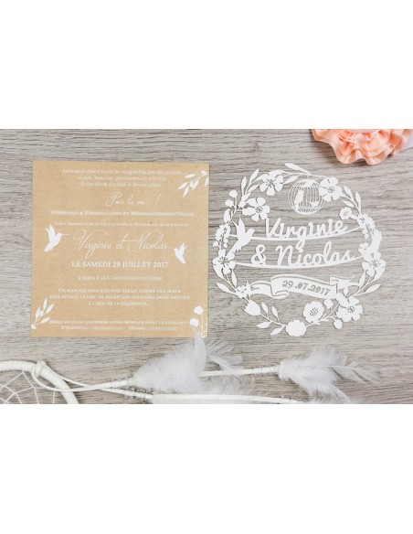 Pack :Faire-Part Mariage Broderie Papier Oiseaux