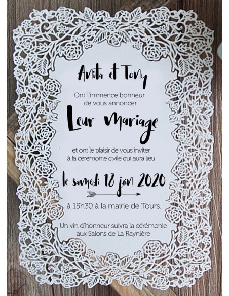 Pack :Faire-Part Mariage Jolies fleurs laser cut
