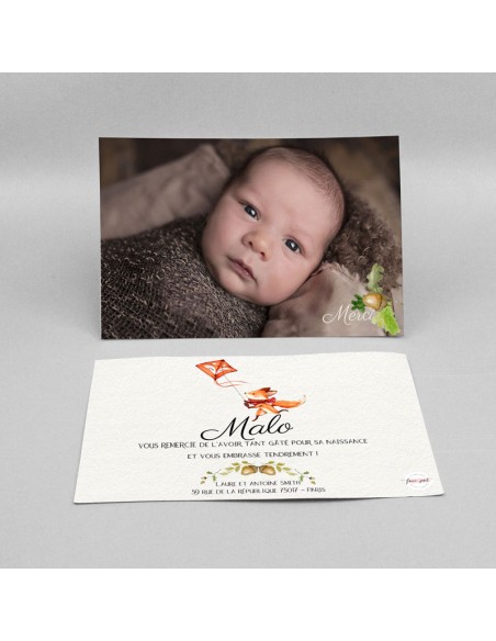 Un carton de remerciements pour la naissance de votre enfant tout en douceur et personnalisable dans les couleurs de votre choix.