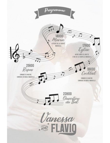 Ce carton indiquera le programme de la journée sous forme de frise ludique. Carton vendu avec le faire-part à personnaliser avec vos couleurs et vos textes.