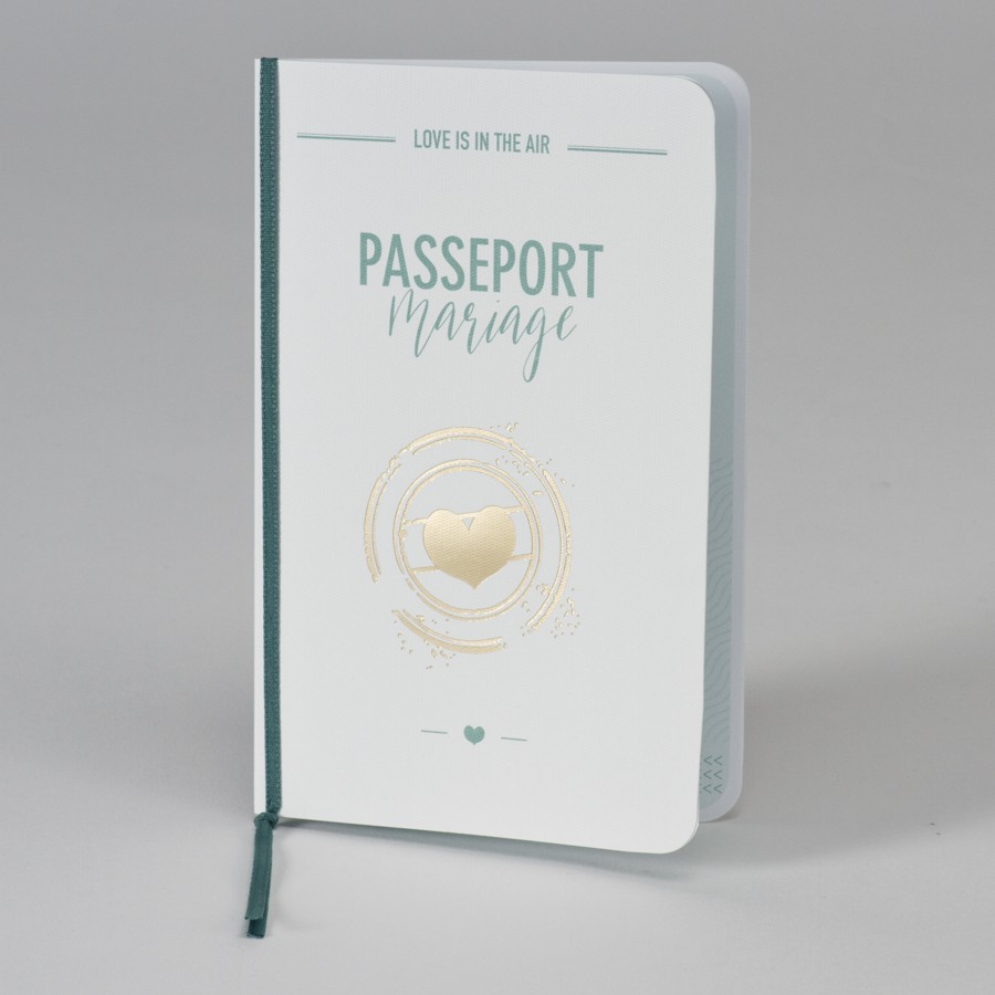 Pack :Faire-part Mariage Passeport Vert Menthe et Doré