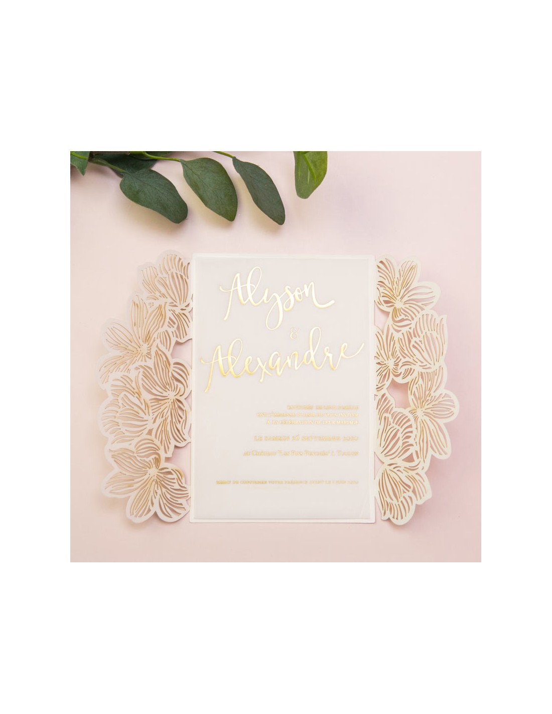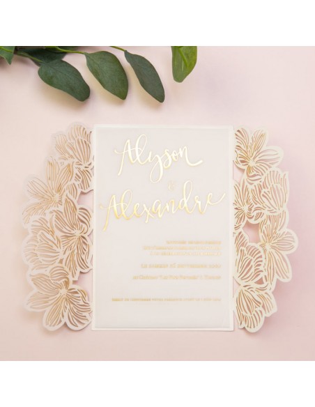 Pack Faire-part mariage Pochette Fleur retro glitter