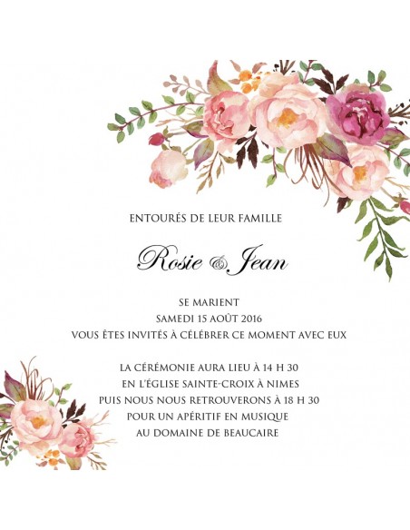 Pack :Faire-part Mariage Roses Bordeaux Pèche - Collection Rosie