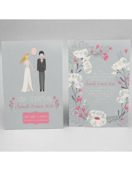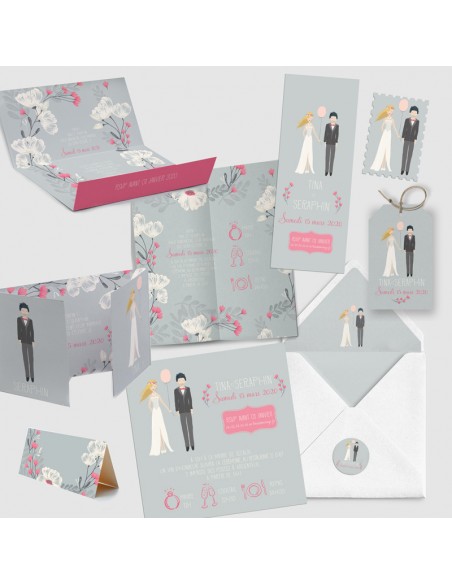 Pack Faire-part Mariage Illustration mariés - Collection Tina