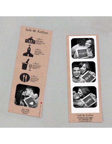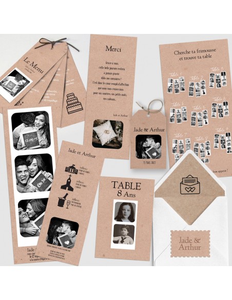 Pack :Faire-part Mariage Marque Page Photomaton - Collection Jade