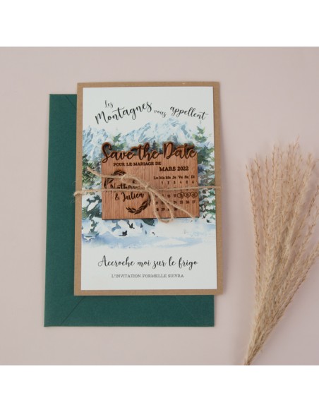 Pack :Save the date avec magnet en bois gravé - Mariage en hiver
