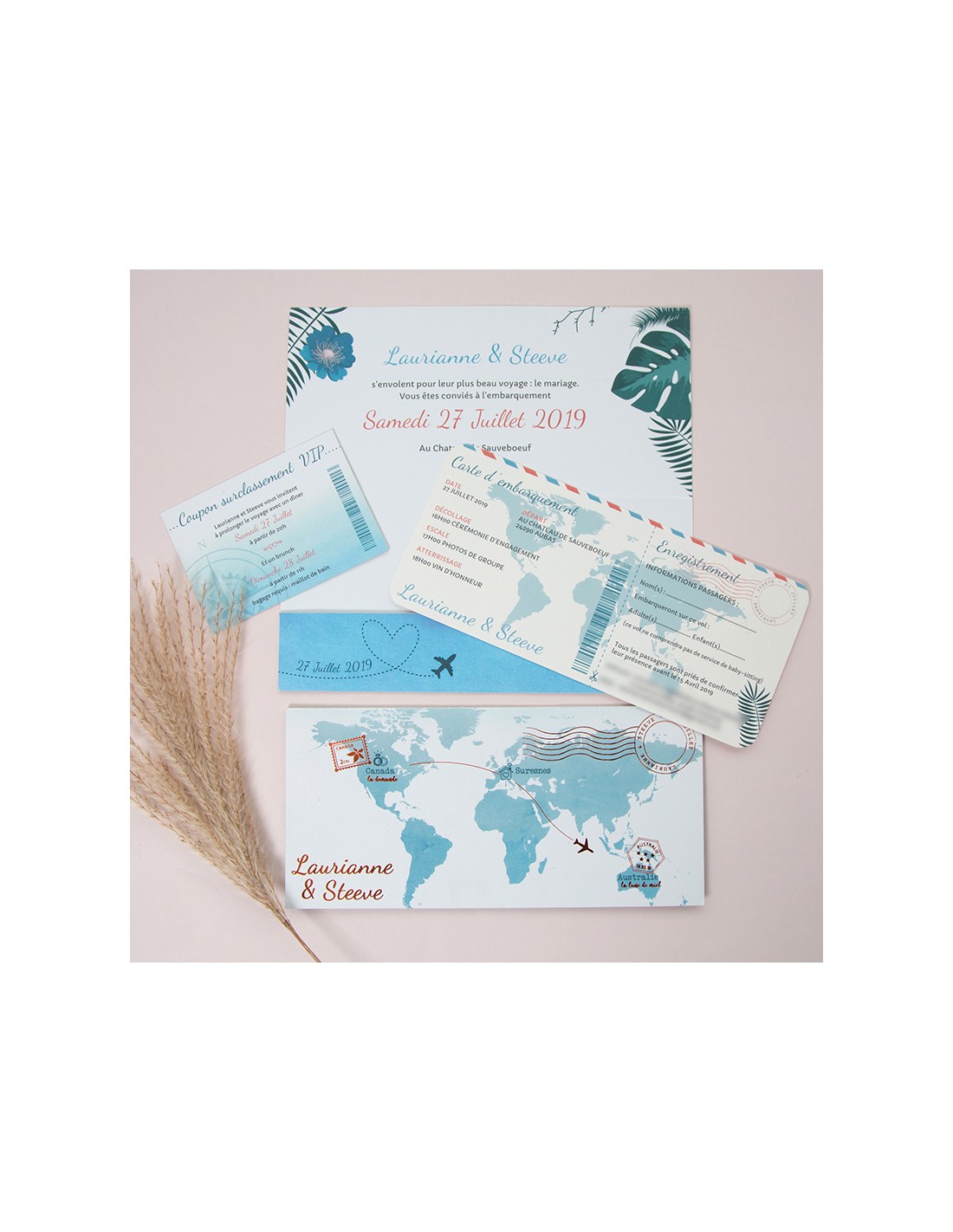 Pack :Faire-part Mariage Pochette Billet d'avion