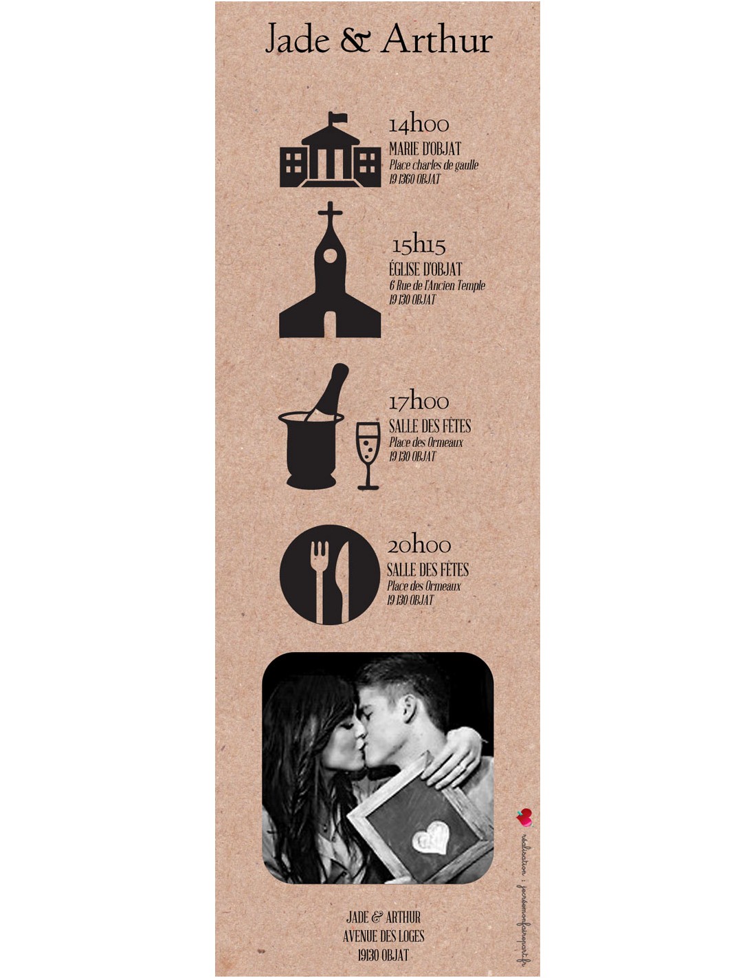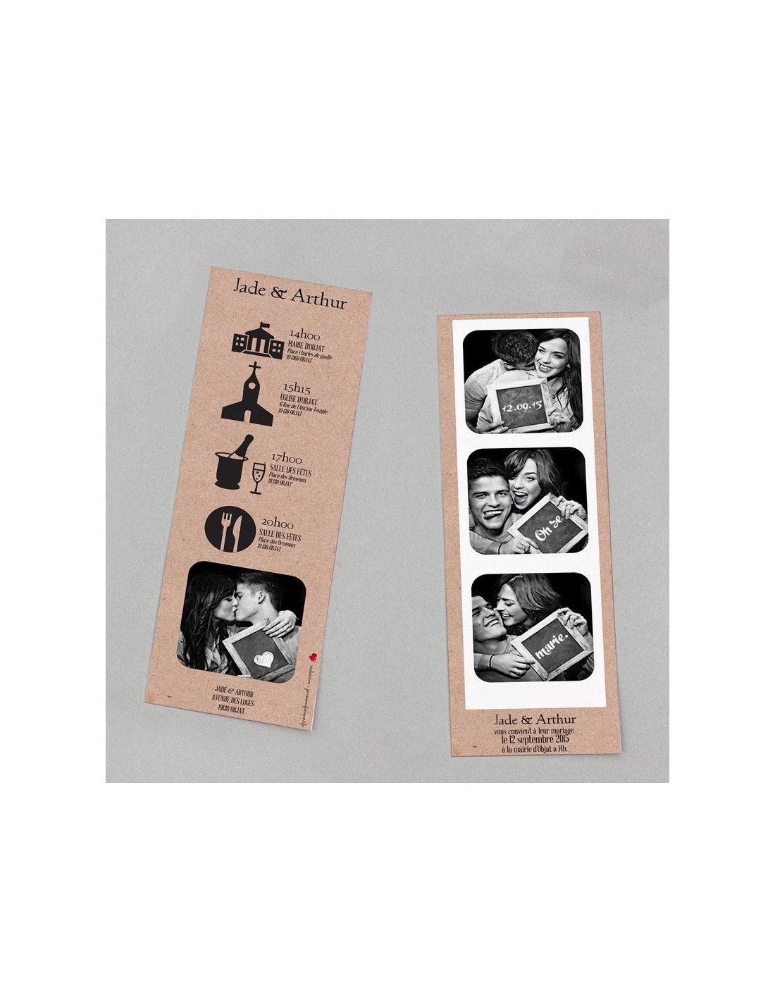 Pack Faire-part Mariage Marque Page Photomaton - Collection Jade