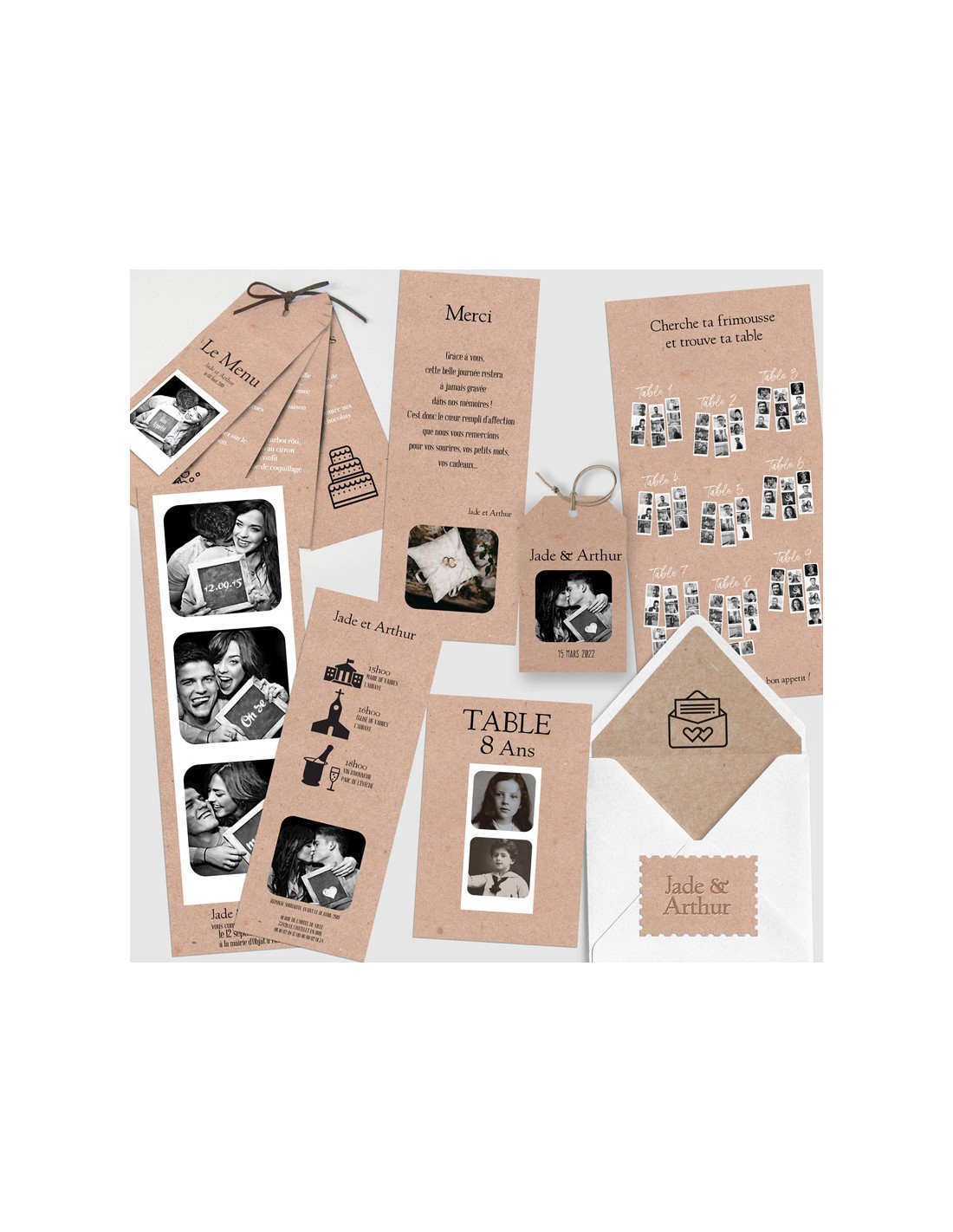Pack :Faire-part Mariage Marque Page Photomaton - Collection Jade