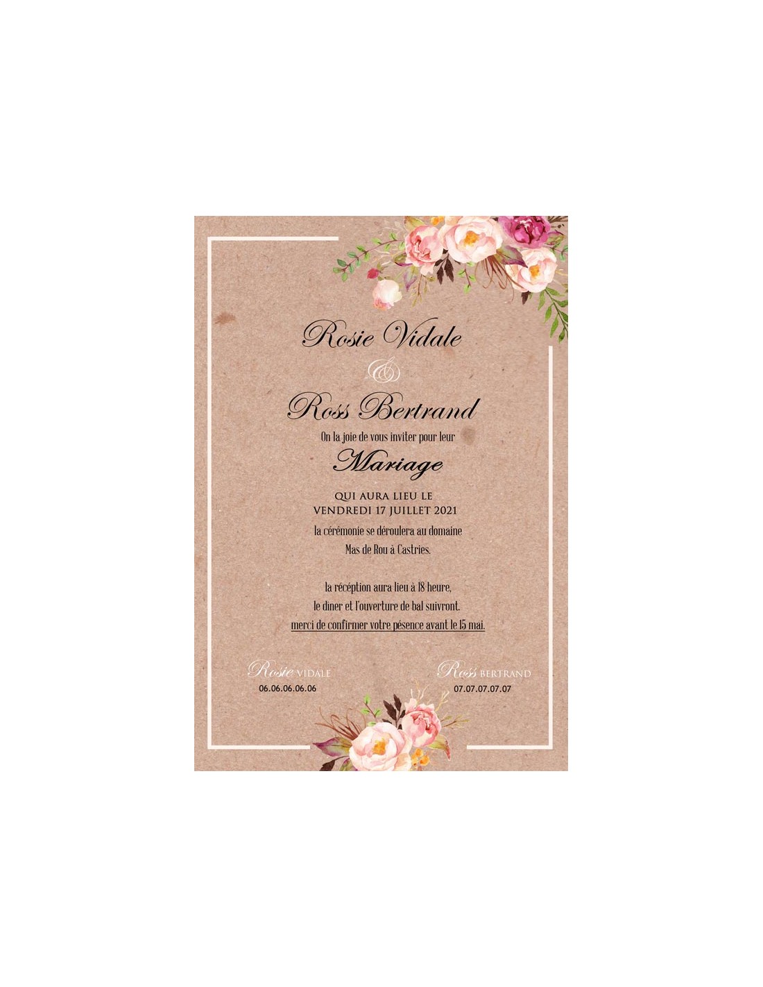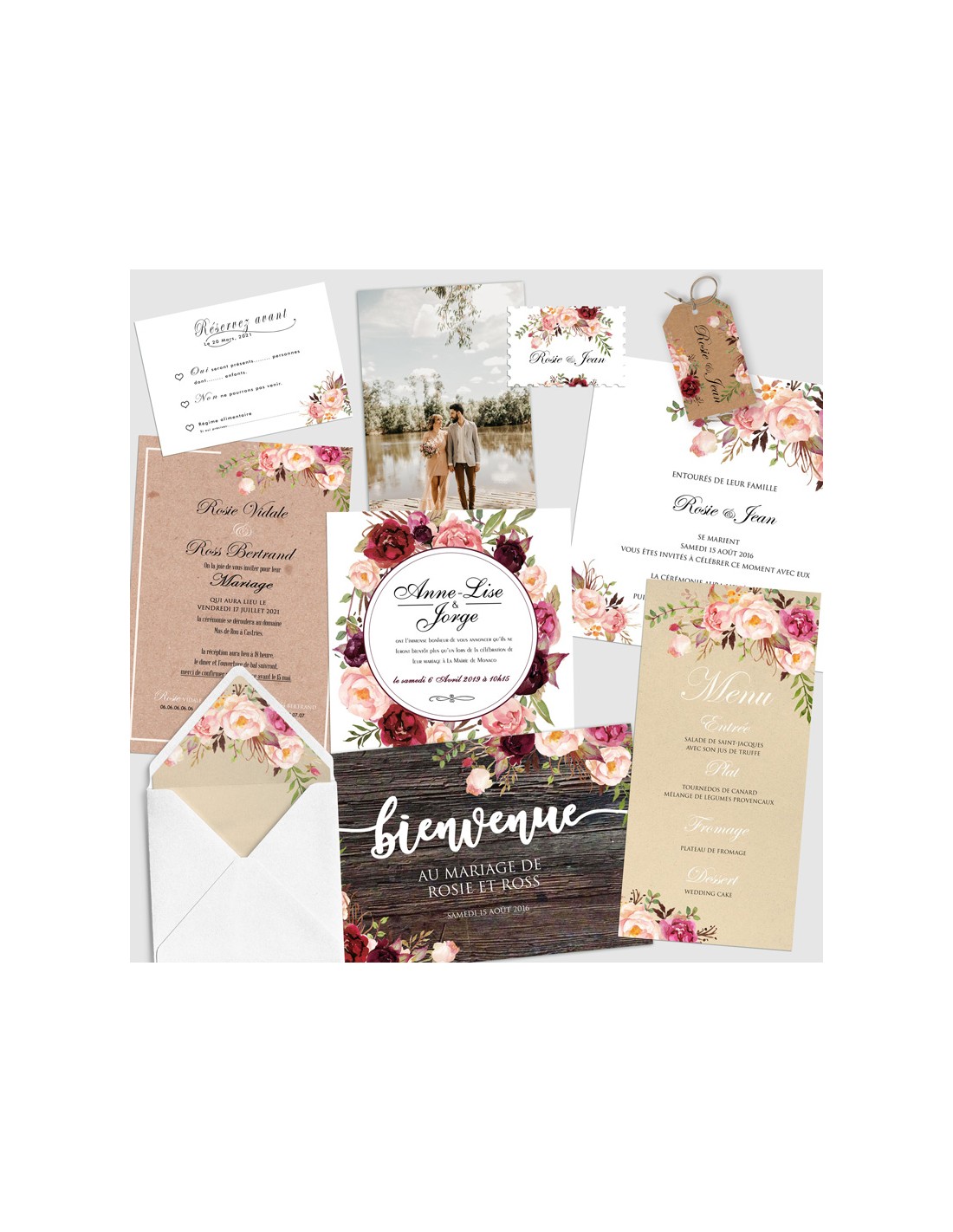Pack :Faire-part Mariage Roses Florales - Collection Rosie