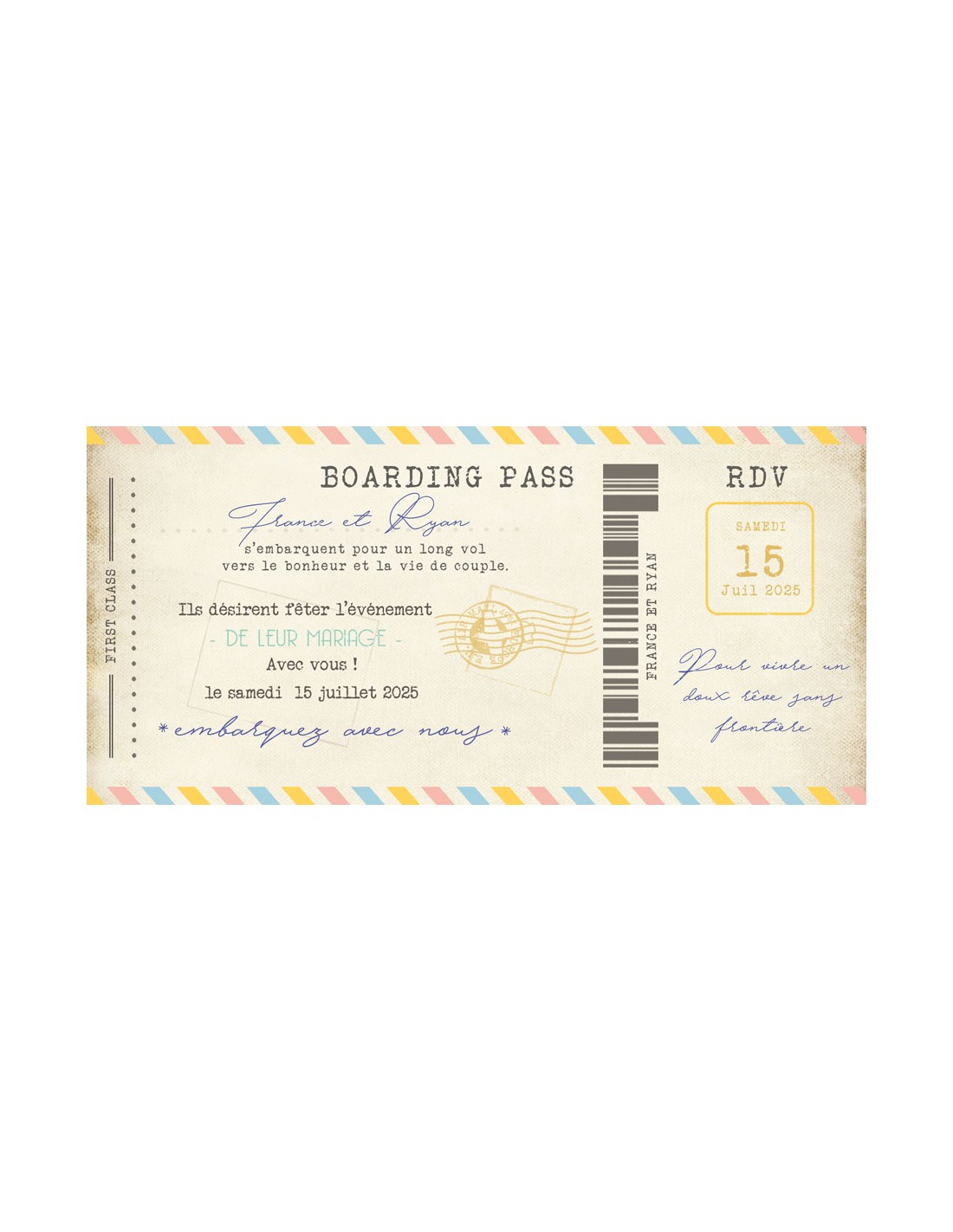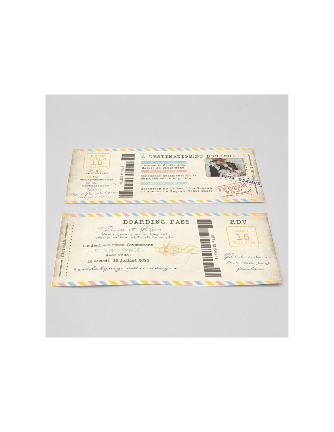 Pack Faire-part Mariage Billet Avion - Collection France