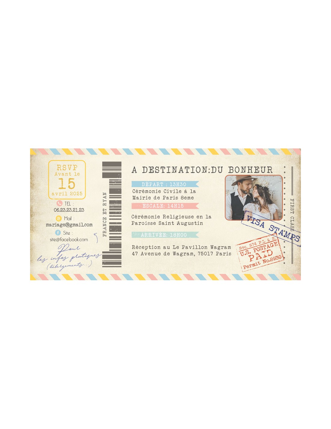 Pack :Faire-part Mariage Billet Avion - Collection France