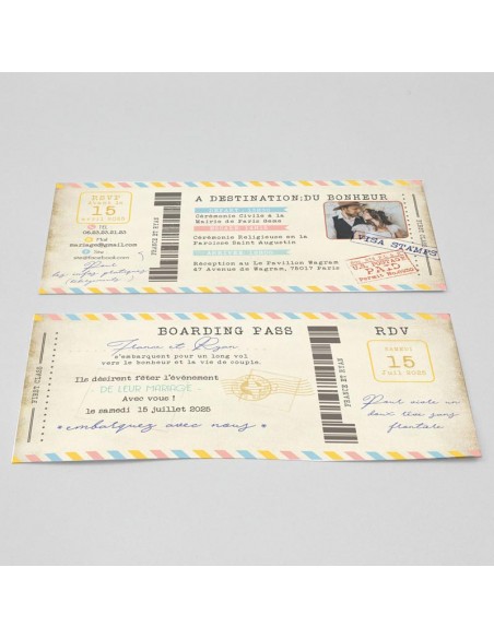 Pack Faire-part Mariage Billet Avion...