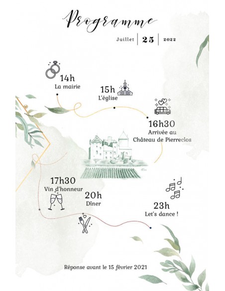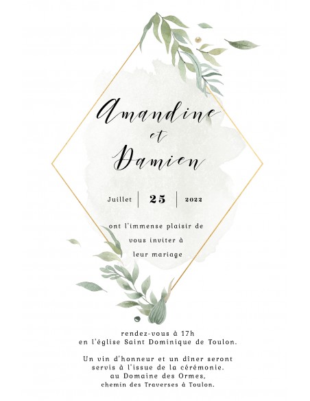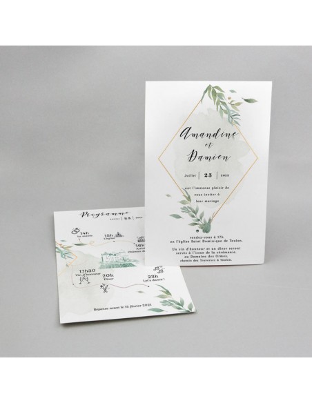 Pack :Faire-part Mariage Feuillage Olivier - Collection Amandine