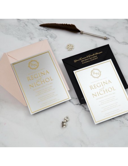 Pack Faire-part Mariage Plexiglas Miroir Argent Design Royal - Modèle 2