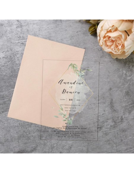 Pack :Faire-Part Mariage Plexiglas olivier - Collection Amandine