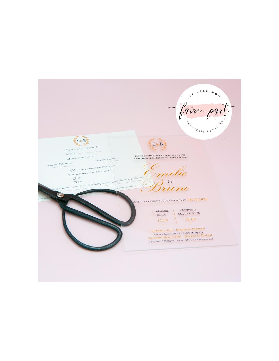 Pack Faire-Part Mariage Plexiglas Luxe - modèle 14