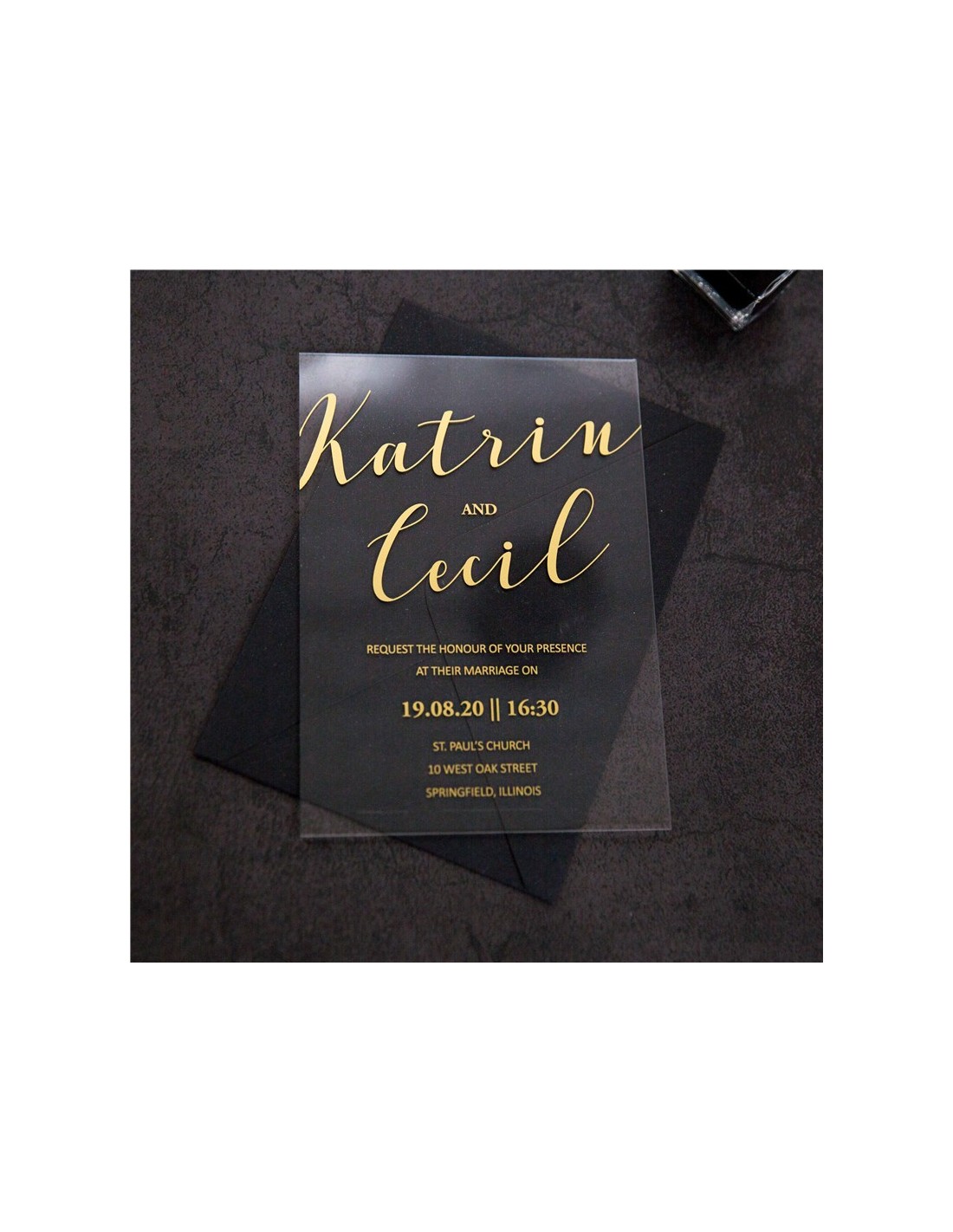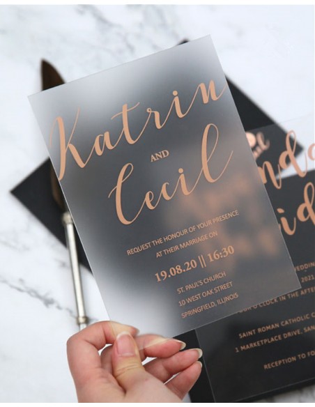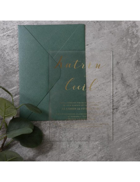 Pack :Faire-part Mariage Plexiglas Sérigraphie OR - Modèle 9