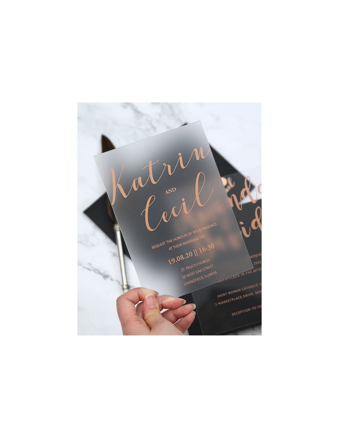 Pack Faire-part Mariage Plexiglas Sérigraphie OR - Modèle 9